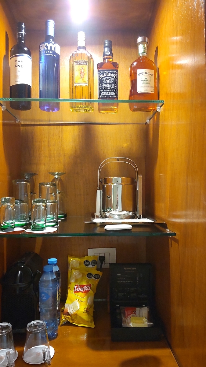 お部屋のミニバーにはお酒や飲み物がたっぷり補充されてます。